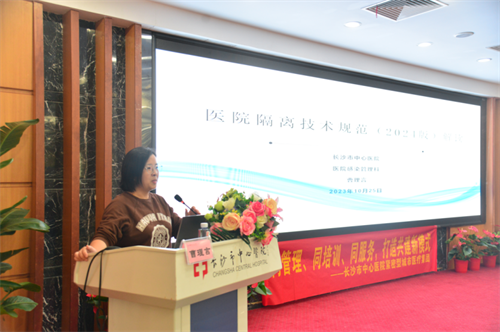 最后,我院医院感染管理科科长曹理言对标国家最新出台的《医院隔离技术规范(2024版)》进行细致解读,并结合丰富的院感管理经验对基层医院隔离工作的重点、难点进行现场分析,督促各基层成员单位进一步筑牢院感防线,提高院感防范意识,保障医疗质量安全。
