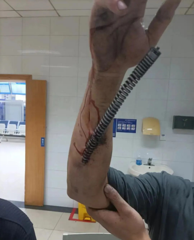 26岁的施工员李刚(化名)在进行下水道疏通时,被操作工具的金属弹簧绞进右前臂,随后被紧急送进91短视频