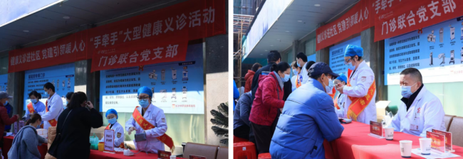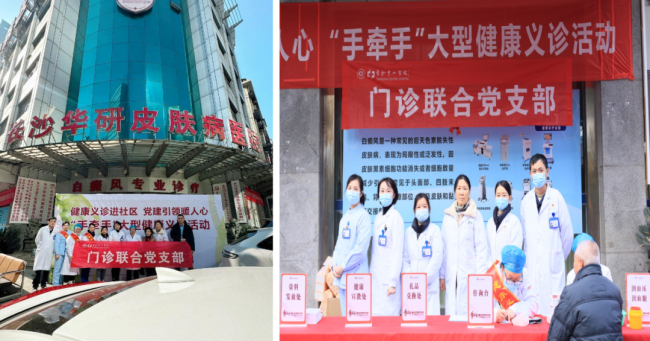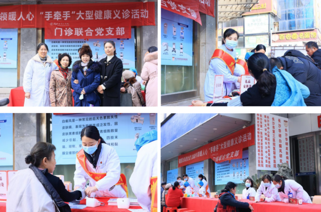 门诊联合党支部组织皮肤科、内科专家团队携手支部结对的医联体单位长沙华研皮肤病医院党支部以及留芳岭社区党工委,共同开展“手牵手”“健康义诊进社区,党建引领暖人心”义诊活动。