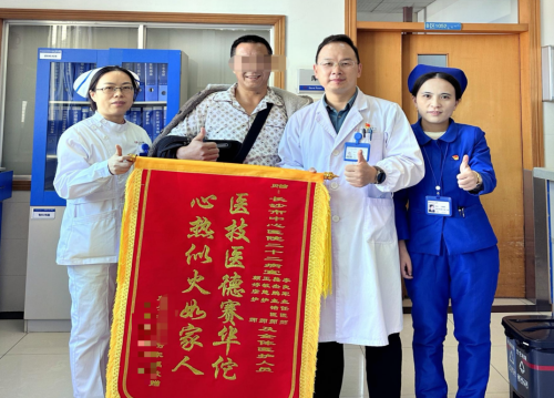 (南华大学附属长沙中心医院)运动医疗、关节骨病科。锦旗上印着一个大大的“6”。见到这面“标新立异”的锦旗,科室医护人员都被逗笑了,患者易立波(化名)表示:“锦旗上的‘6’,一来是感谢医生的手术技术‘6’,二来是自己术后走路很‘6’,希望以后运动更‘6’。”患者易先生是在踢足球时扭伤右膝关节造成右膝外侧半月板撕裂,在医院接收膝关节镜手术治疗后恢复良好。