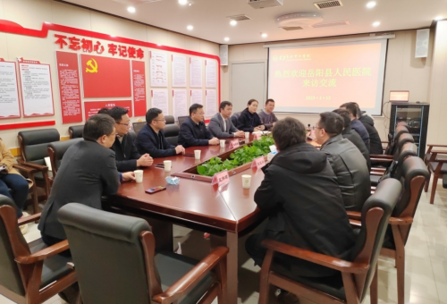 1月12日,为了进一步推动省级边界类区域医疗中心建设项目合作,迎接岳阳县人民医院院长王石虎一行6人来院交流,我院举行专题座谈会,党委副书记、院长陈智毅,党委委员、副院长黄孟军,总会计师刘兴旺出席会议,社会工作办、行风评价办、医务科、心血管内科、外周血管介入科、神经内科负责人参加座谈。