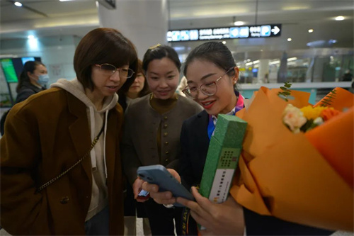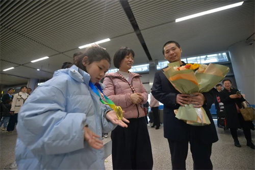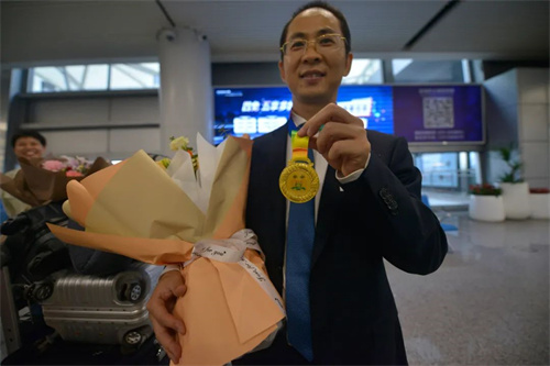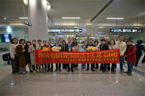(南华大学附属长沙中心医院)医务人员也随队载誉归来,医院人力资源管理部、院办公室、队员所在科室负责人、家人和朋友捧着鲜花早早到达机场迎接着他们的到来。