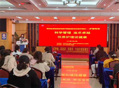 为充分发挥医联体牵头单位教学优势,进一步落实紧密型城市医疗集团“三同”管理机制,3月28日下午,我院联合雨花区卫健局在办公楼二楼多功能厅举办2024年第一季度医联体成员单位护理专场业务培训。本次培训由医疗联合工作办公室副主任黄晶主持,各基层成员单位120名护理业务骨干参与。