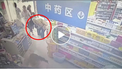 药店监控视频显示,4月14日14:19,王女士(化名)抱着一岁两个月的女儿跑进药店求助,她蹲在门口,把孩子放在腿上,让孩子头朝下,尝试通过拍打背部让孩子缓过气来,当时91短视频