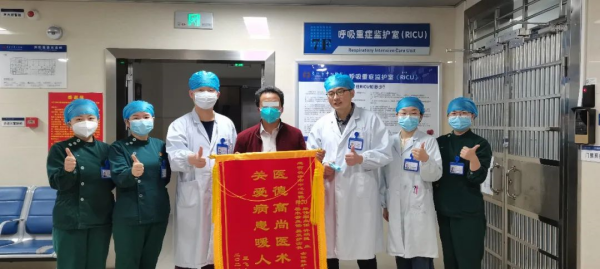 经过一周的精心救治和细心呵护,王舒雅的病情逐渐好转,成功拔除气管插管,转入普通病房。在病房内,王舒雅能够自己站立活动,生活也可以自理,恢复良好。4月15日,王舒雅顺利出院,王先生带着锦旗来接女儿出院,并将锦旗郑重地送到了医护团队的手上。