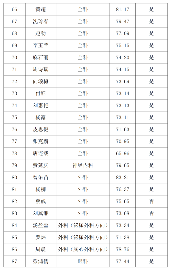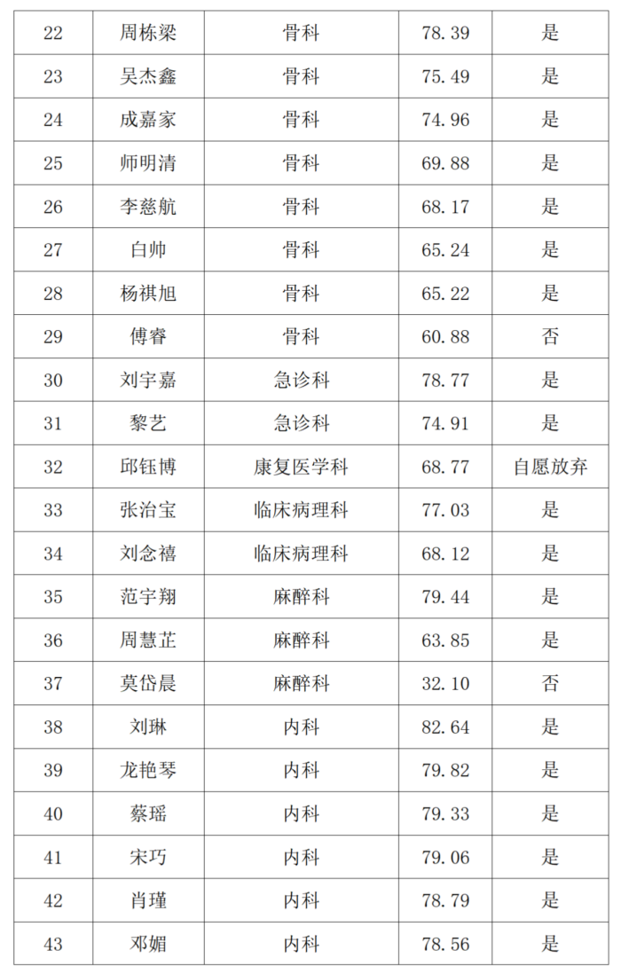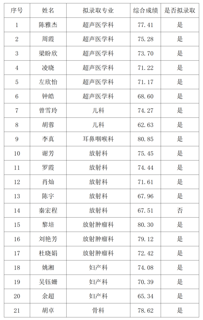 根据《湖南省卫生健康委科教处关于做好2024年度住院医师规范化培训招收工作的通知》、《91短视频 (南华大学附属长沙中心医院)2024年住院医师规范化培训招录工作方案》,经住院医师规范化培训招生工作领导小组审核,现将2024年住院医师规范化培训招录第一批第一志愿录取名单予以公示,公示期为2024年4月24日-30日,如对录取结果有异议,请联系内部监督科,联系电话:0731-85668104。
