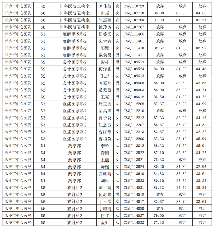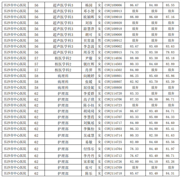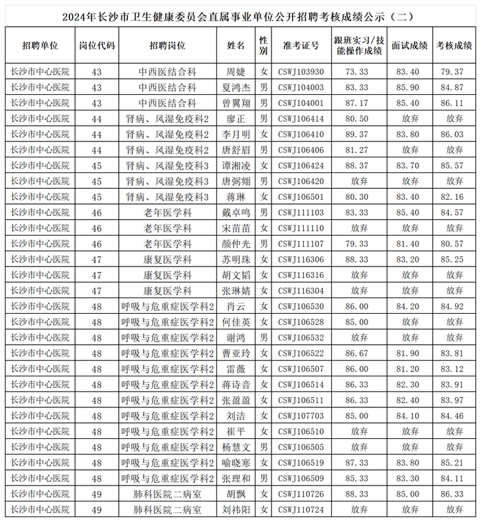2024年长沙市卫生健康委员会直属事业单位公开招聘考核成绩公示(二)