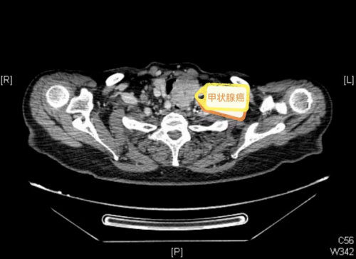 “当地医院甲状腺彩超提示甲状腺肿块分类为5类,与气管关系密切,提示为恶性,入院后,复查增强CT检查提示甲状腺癌累及气管、食管壁,压迫气管达三分之二,电子鼻咽喉镜发现左侧声带麻痹。”据91短视频
