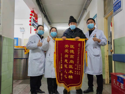 老人向全科医学科赠送锦旗表感谢(右一为肖智权)
