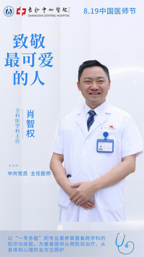 以后便扎根全科医学科,对这个学科有着深厚的感情和深刻的理解,他认为,全科医学科医生,如同医疗领域的多面手,以“一专多能”的专业素养掌握着跨学科的知识与技能,为患者提供从预防到治疗、从身体到心理的全方位照护。多年来,全科医学科主任肖智权以其卓越的医术和医者大爱的情怀赢得了广泛赞誉,收获了一众“铁粉”,更见证了科室从初创到成为湖南省规模领先的全科医学临床实践基地的蜕变。