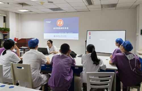 在培训后的复盘讨论环节。陈丽博士借助视频回放,细致入微地分析每位学员在模拟过程中的表现,鼓励大家自我反思,积极提问。她不仅解答了学员们的疑惑,还巧妙地将理论知识、临床思维、危机应对策略及团队协作理念融入其中,帮助学员们实现了从理论到实践的深度转化与融合。