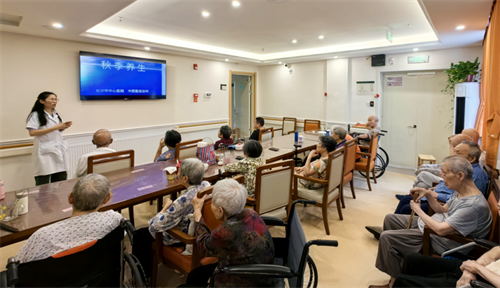 八段锦活动结束后,中西医结合科马不停蹄地赶到莱康养老院,为这里的老年居民带来了一场秋季养生讲座。中西医结合科副主任、副主任医师欧降红在讲座中应用中医知识,详细阐述了秋季养生的重要性及注意事项,并针对老年人提出了具体的养生建议。