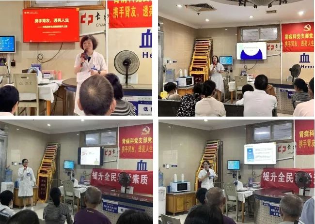 肾病、风湿免疫科主任、主任医师文锐首先告诉病友,规律透析、限水、科学饮食,对于提高透析患者生活质量有关键作用。随后,肾病、风湿免疫科之血液净化中心副主任医师夏熊芳、主治医师雷容和李佳丽先后就肾脏疾病的预防、早期诊断、血液透析原理与操作、容量管理的科学方法、健康饮食的原则以及血管通路维护的要点等核心话题,进行了详尽而生动的讲解。他们结合临床案例,用通俗易懂的语言,有效提升了在场病友及家属的健康素养。