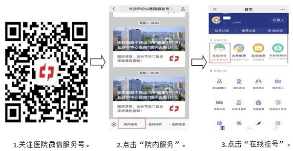 3.电话预约:预约挂号服务电话:0731—85668000(8:00-12:00,14:30-17:30)