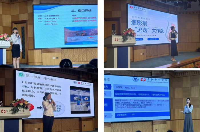 活动伊始,临床护理典型案例竞赛拉开帷幕。本次竞赛邀请了医院感染管理部主任杨东华、运营管理办公室主任金昕、医务部副主任肖小旺及全体科护士长担任评委。在造口伤口案例中,10位参赛选手围绕疑难伤口、压力性损伤、糖尿病足等典型案例,从患者基本病情、伤口评估、治疗原则到处理过程进行了全面展示,不仅详细记录了伤口愈合的每一步,更深刻剖析了护理过程中的难点与创新点,展现了护理人员卓越的专科护理水平与深厚的人文关怀;而静脉治疗案例中,10位选手则聚焦于临床静疗工作中的实际问题,通过MDT团队协作、循证理念及多样性分析工具等模式,层层深入剖析,充分展示了静疗护理领域的精湛技艺与独特见解。