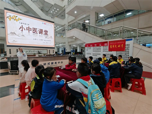 (南华大学附属长沙中心医院)儿童中医门诊在医院门诊大厅举办趣味小中医课堂,通过社会招募的40组小学生家庭共同参与,探究中医奥秘。