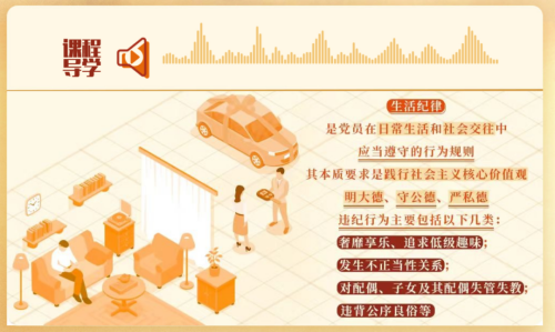 生活纪律是党员在日常生活和社会交往中应当遵守的行为规则,其本质要求是践行社会主义核心价值观,明大德、守公德、严私德。