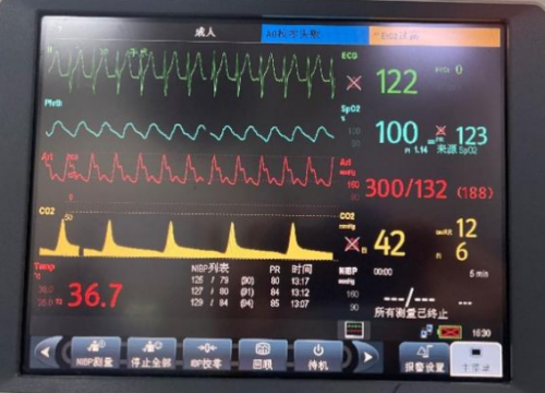 图2:术中监测动脉压,超过心电监护仪的最大监测值