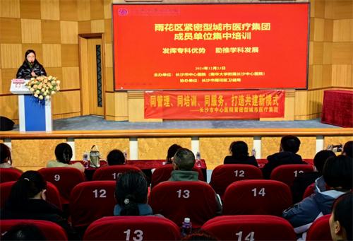 为深化医联体合作,提升成员单位诊疗水平,12月23日下午,我院携手雨花区卫健局,在健康管理中心一楼多功能厅圆满举办了2024年第四季度医联体成员单位业务培训。本次培训以“发挥专科优势,助推学科发展”为主题,由医疗联合工作办公室副主任黄晶主持,近90名来自各成员单位及合作单位业务骨干参会接受培训。