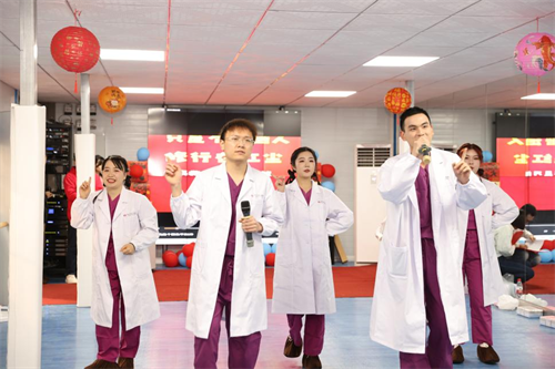 随后各住培专业基地和员工兴趣协会带来了集歌舞、朗诵、弹唱、说唱、书画、走秀、花样乒乓、美食分享等多种形式的激情联欢。