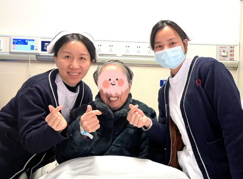 曹奶奶术后对眼科的精心治疗赞不绝口,出院前与护士合影留念