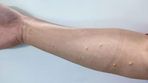 据悉,甄华在春节期间回了一趟老家,因抵挡不住家乡菜的美食诱惑,鸡鸭鱼肉以及各种特产零食“胡吃海塞”了不少。一开始并未感到不适,直到这周开始,她的四肢上逐渐长出了许多黄豆大小的肿物,且一直未消退,数量还在不断增加。于是,焦急万分的她来到91短视频 (南华大学附属长沙中心医院)皮肤科门诊就诊。