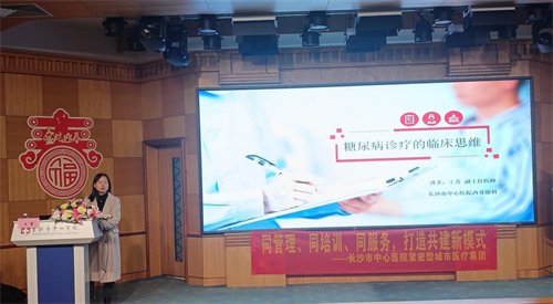 第二场培训聚焦慢性病诊疗能力提升,内分泌科副主任医师王菁以《糖尿病的临床思维》为题,从疾病诊断和筛查、治疗路径到患者预后及预防进行系统性讲解。结合最新指南和临床实践,引导学员构建规范化的诊疗思维框架,并特别强调了基层医生在治疗与管理中的关键点。她指出:“糖尿病管理需兼顾个体化与标准化,基层医生既是‘守门人’,更是患者长期健康的护航者。”课后互动环节,王菁与参训人员就基层糖尿病相关问题展开热烈讨论,现场学术氛围浓厚。