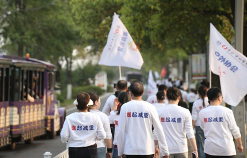 “‘医’起减重,享‘瘦’人生,做健康的责任人,做健康的代言人”,伴随着陈智毅院长铿锵有力的号令,大家整队出发,用脚步丈量健康。