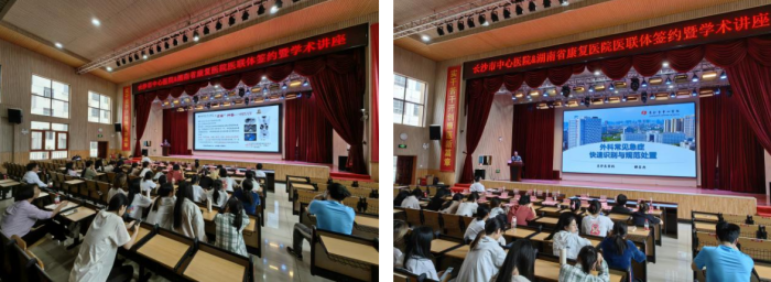为加强医联体建设工作,充分发挥我院医疗资源优势,推进医疗与康复融合发展,4月16日上午,在党委委员、副院长黄孟军带领下,我院与湖南省康复医院举行医联体合作协议签约授牌仪式,此后将围绕加强学科及科研领域的合作、共同推进医护康治研一体化等方面进行广泛深入交流。当天,医疗联合工作办公室还组织肿瘤科、重症医学科、外周血管介入科、脊柱外科、核医学科、神经外科、神经内科、急诊医学科等科室与湖南省康复医院开展学术交流活动。