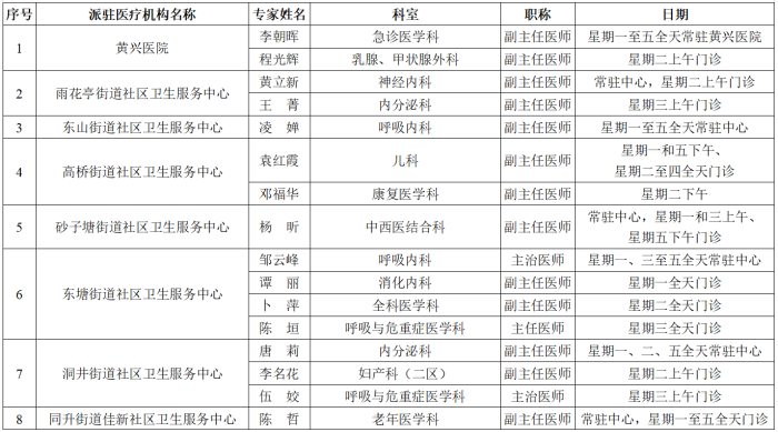 井湾子街道仁和社区卫生服务中心(长沙仁和医院)坐诊时间:星期五上午