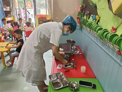 为确保托管托育服务安全、规范、有序运行,建立了“工会统筹+幼儿园托管+家长协管”的多重管理机制,成立了家委会,还组织家长成立了“爱心协管团”,由院关工委每天安排家长轮值协管。为构建安全保障体系,幼儿园与每位家长签订了《安全责任书》,严格接送签到、活动区域定时隐患排查、每日餐食留样检查,配备了急救箱,实现了保安全时段、监控全覆盖;医院方面,保卫部对幼儿园消防安全进行了检查,院感部对幼儿园环境及餐具进行了采样,总务部对幼儿园餐饮食材安全进行了督导,医院给孩子们买了保险,每天早晚接送孩子的高峰时间段还安排了保卫部专人做“护花使者”。