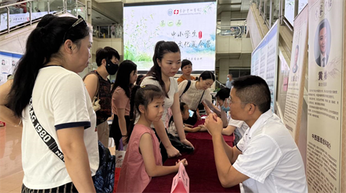 活动现场特设中医义诊区,为完成"小中医"实践的学员家庭开启"一对一"亲子健康课堂。中西医结合科的专家团队为学员及家长提供免费的脉诊服务与体质辨识,并依据个体情况制定个性化的三伏养生方案,同时给予常见病的防治指导。现场的许多家长频频点赞:“孩子在这里学习中医知识,我们也能收获实用的养生建议,真是全家受益的体验!”