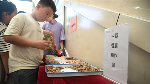 在“中医知识大转盘”前,学员们参与智趣竞答,通过答题赢取茶饮券与香囊券,20道趣味题目涵盖三伏天的饮食、作息、运动、疾病预防等实用知识;中药茶饮区准备金菊润肺饮、安神助眠饮、解暑生津饮等三款“夏日特调”供学员茶饮品鉴,中医护士现场讲解其生津安神、健脾祛湿的配伍原理;在香囊工坊,学员们亲手挑选驱蚊药材并填充制作中药香囊,把防病智慧巧妙融入日常生活。