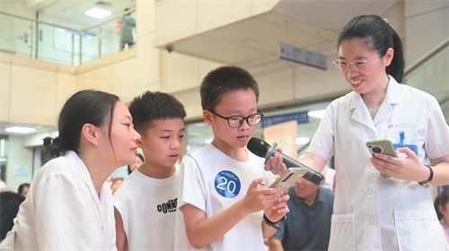 活动现场特设中医义诊区,为完成"小中医"实践的学员家庭开启"一对一"亲子健康课堂。中西医结合科的专家团队为学员及家长提供免费的脉诊服务与体质辨识,并依据个体情况制定个性化的三伏养生方案,同时给予常见病的防治指导。现场的许多家长频频点赞:“孩子在这里学习中医知识,我们也能收获实用的养生建议,真是全家受益的体验!”
