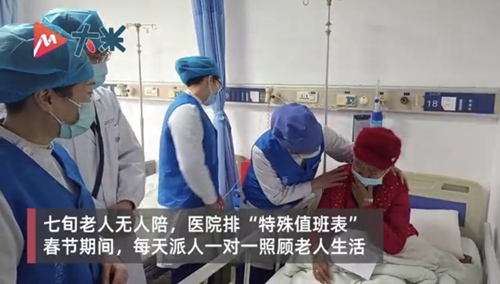 血液内科副主任医师尹亚飞博士介绍,刘向春老人是一名骨髓增生异常综合征患者,今年72岁,患病已经5年多了,这次因为病情加重,于1月15日入院接受治疗。然而住院没多久,一直陪伴老人的儿子、53岁的吴先生因为腹痛被查出消化道溃疡,需要在消化内科入院治疗。本就是低保户家庭,所以吴先生没有办法为母亲请一名陪护,只能请求病房的医务人员多照顾些,他自己也总在治疗后过来照顾母亲。考虑到患者和家属的特殊情况,血液内科党支部自发组织了这次春节一对一的帮扶行动,支部书记罗群丽带头,其他党员积极响应、踊跃报名。支部最后根据大家的春节排班时间,安排了罗群丽、周圆、张雅等多名党员于1月30日至2月7日春节期间轮流陪伴与照顾老人,为她提供生活上的帮助,包括协助她洗漱、进食、入厕,帮助她换洗衣服、翻身、拍背、服药,陪伴她活动及功能锻炼。病房内的患者和家属听说了这件暖心事,纷纷向医务人员竖起大拇指。