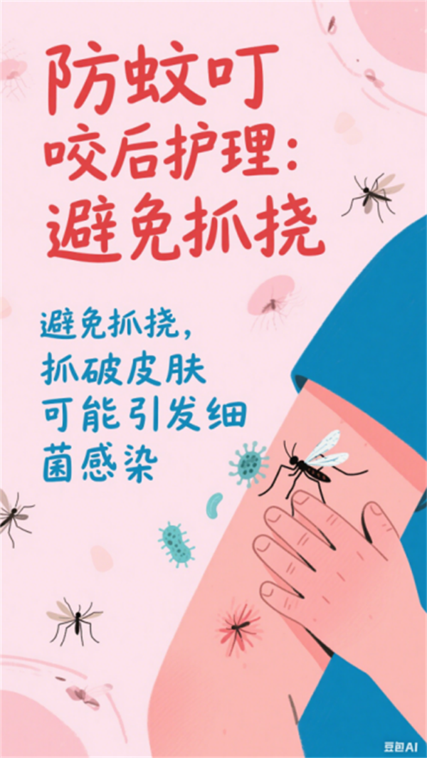 注意:若被叮咬后出现高热、头痛、皮疹、关节痛等症状,需及时就医排查传染病。