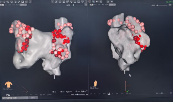 术中经房间隔穿刺后,将环形脉冲导管送入左房,在三维标测系统的精准指导下,零射线完成左心房建模、标测、消融及验证等工作,大幅减少了射线使用时间。此次手术仅耗时30分钟即实现肺静脉完全隔离,整体手术时间缩短至60分钟,患者术中无明显肌颤反应,且无任何并发症发生,术后恢复良好,次日即可下床活动,术后第三天康复出院,相较于传统消融手术时间明显缩短,术后患者心功能有望逐步改善,生活质量将显著提升。此次手术的成功开展,体现了房颤脉冲电场消融(PFA)技术“精准、安全、高效”的临床价值。