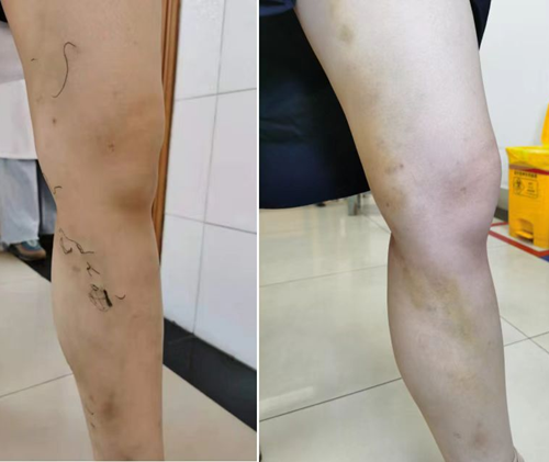 下肢浅表静脉曲张腔内射频消融治疗是一种通过热量使血管内膜受损,血栓形成及纤维化,最终达到管腔闭合的治疗目的。优势在于只需要局麻下手术、创伤小、无明显手术痕迹、术后恢复迅速、术后即可下床行走。与泡沫硬化剂和点式剥脱术配合使用效果更加。